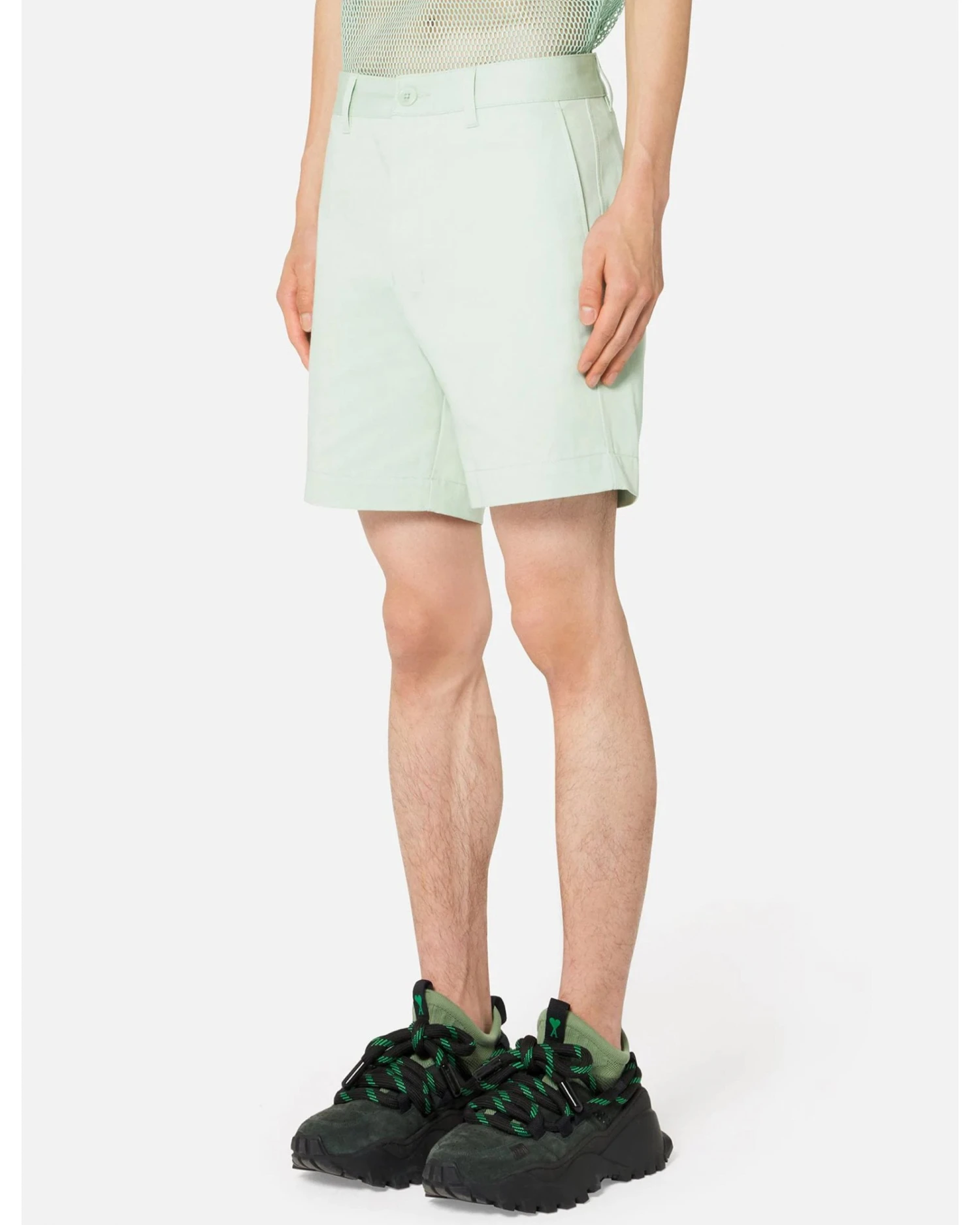 - Ami Mens Aqua Green Cotton Gabardine Chino Shorts