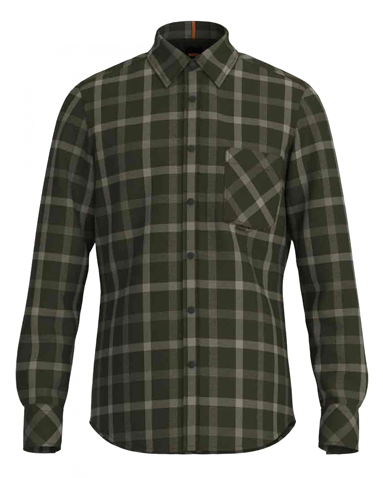 - BOSSÂ Mens Riou_1 Dark Green Checked Light Flannel Shirt