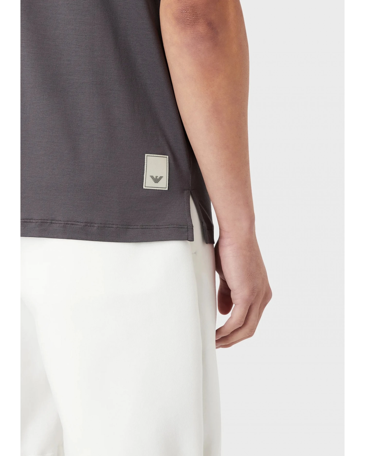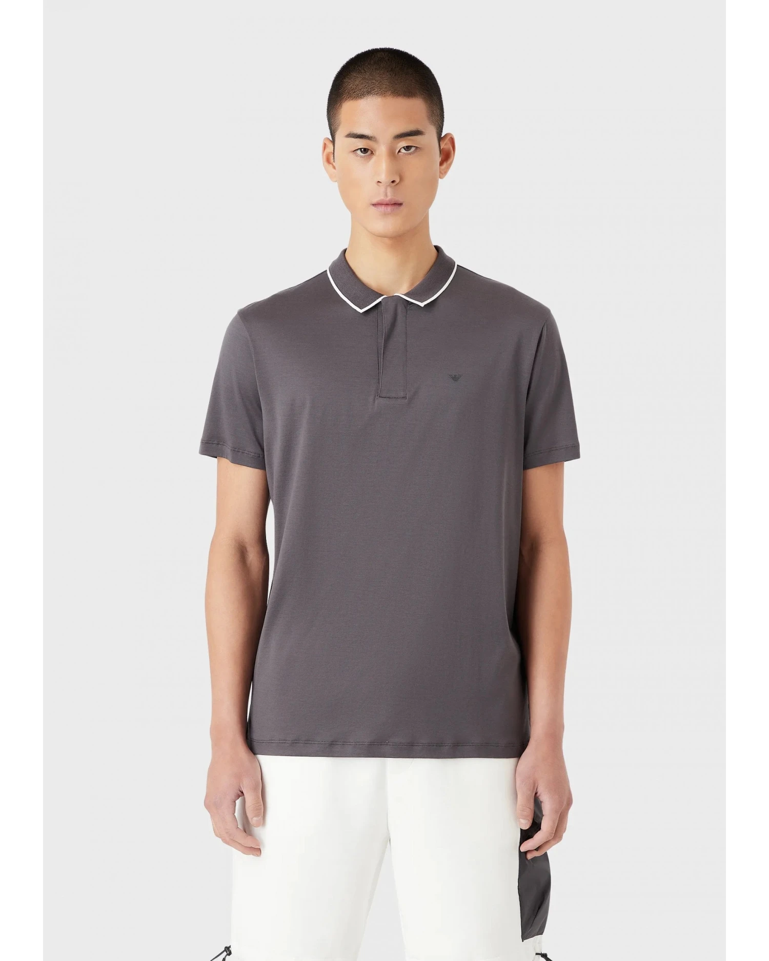 - Emporio Armani Mens Grey Travel Essentials Tencel Blend Jersey Polo Shirt