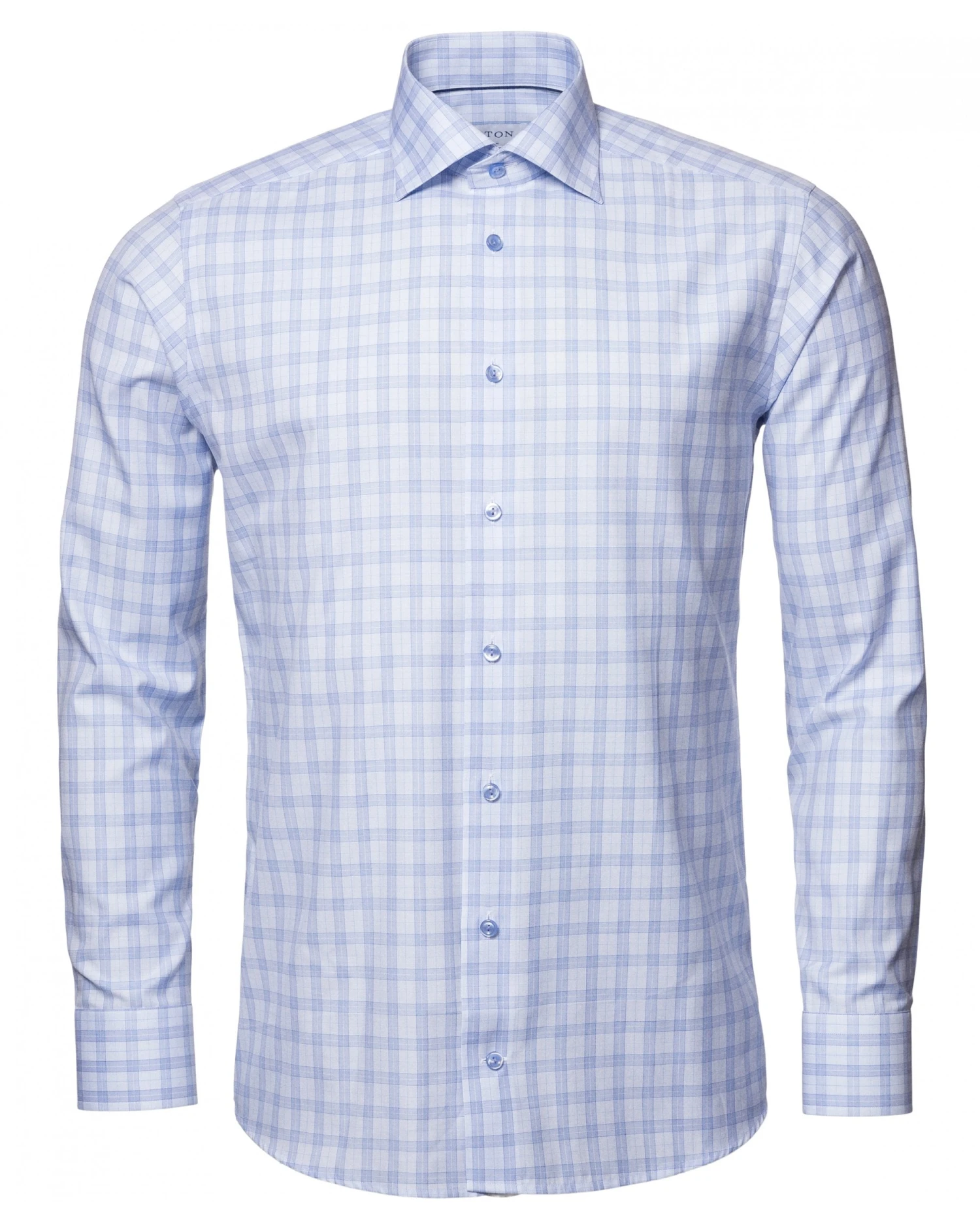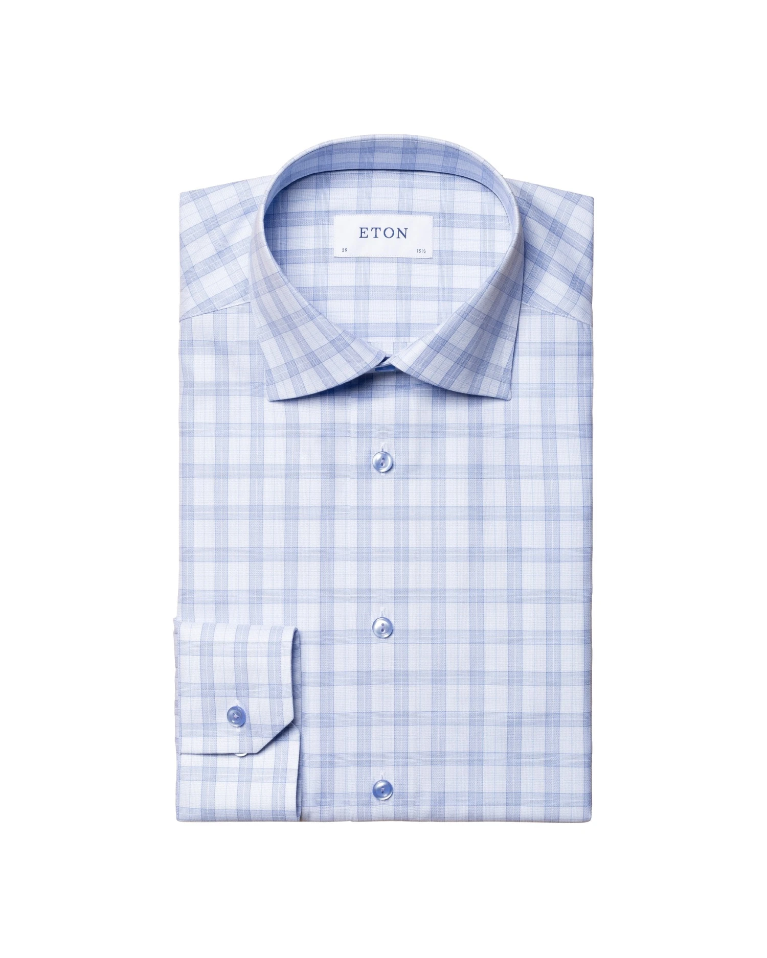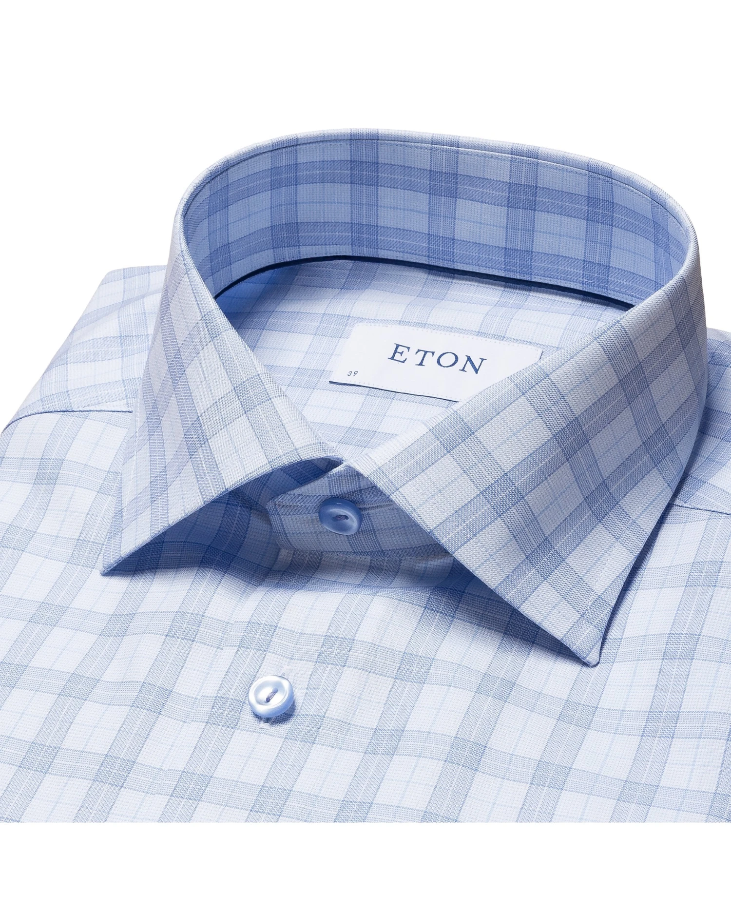 - Eton Mens Light Blue Plaid Cotton Lyocell Blend Shirt