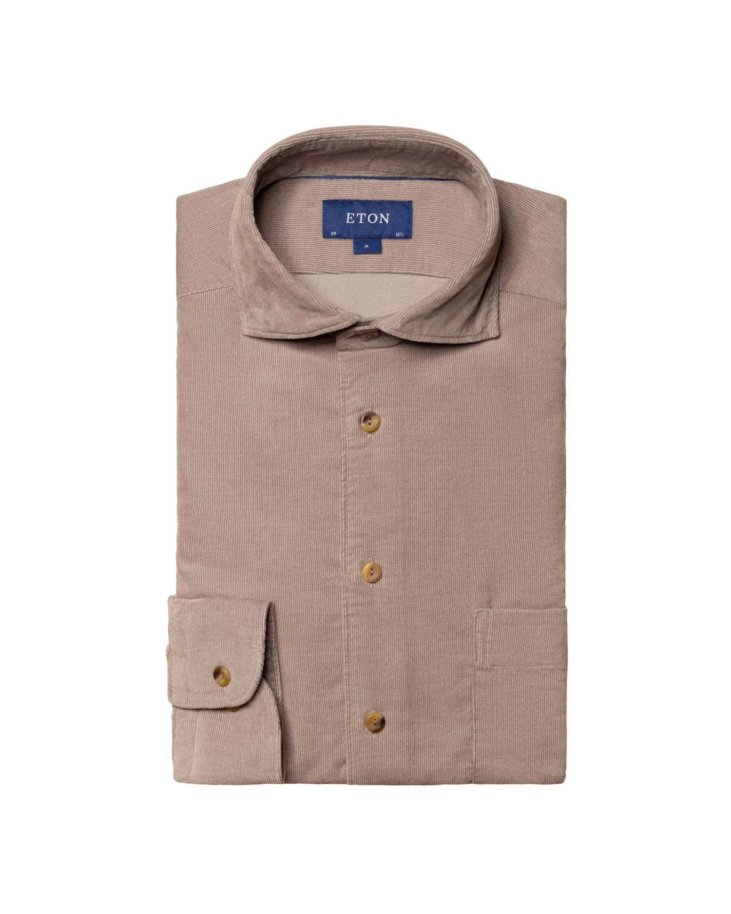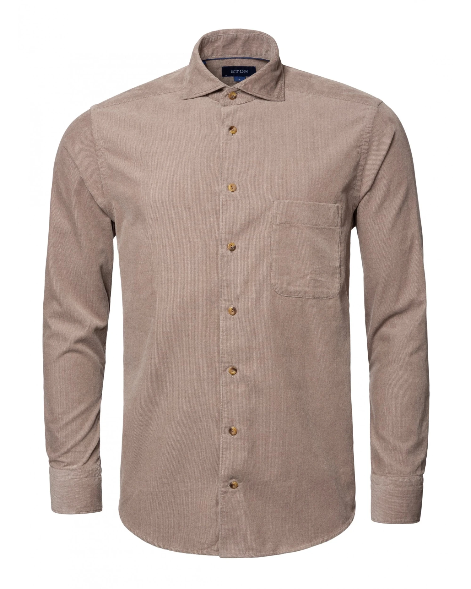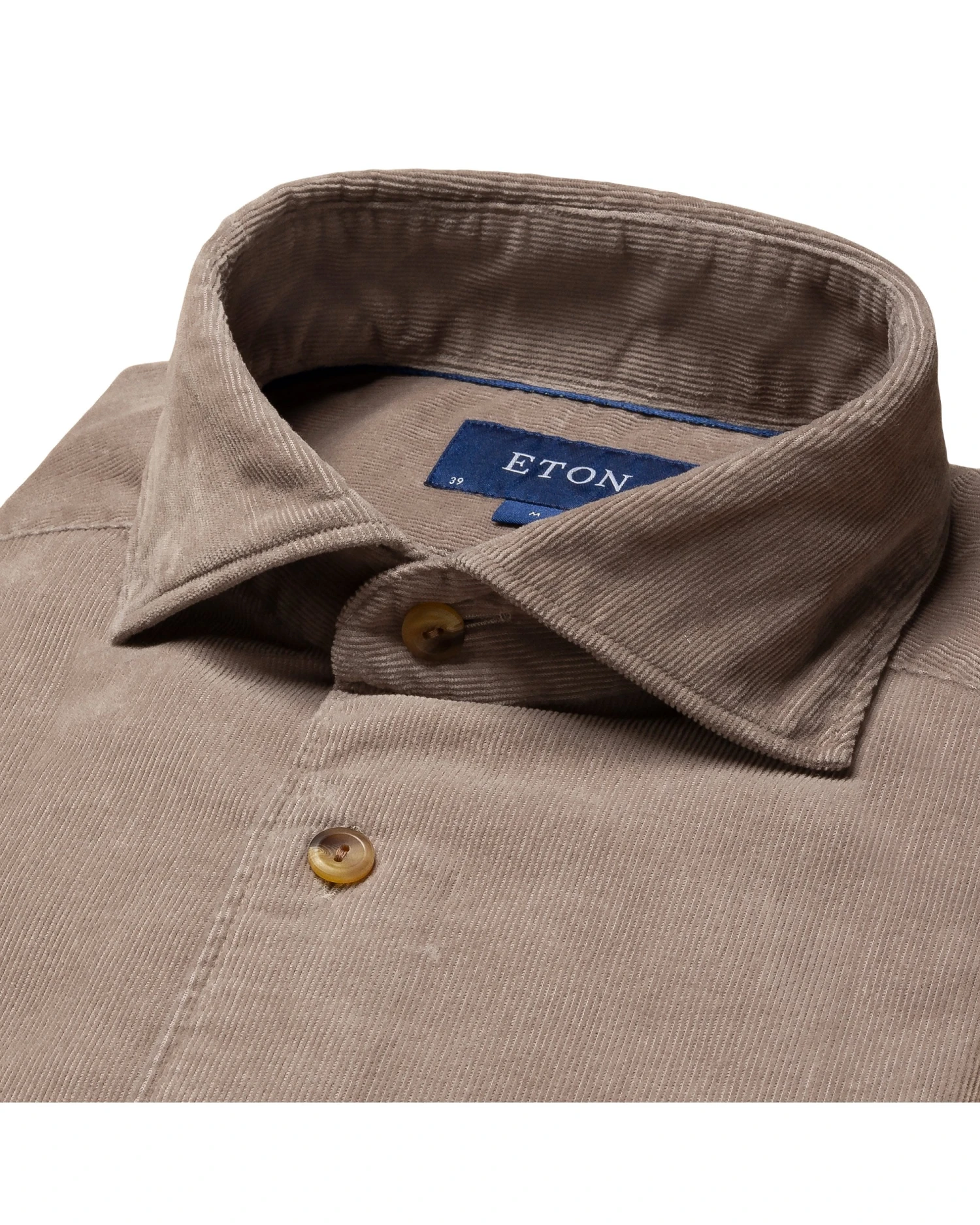 - Eton Mens Light Brown Slim Fit Corduroy Shirt