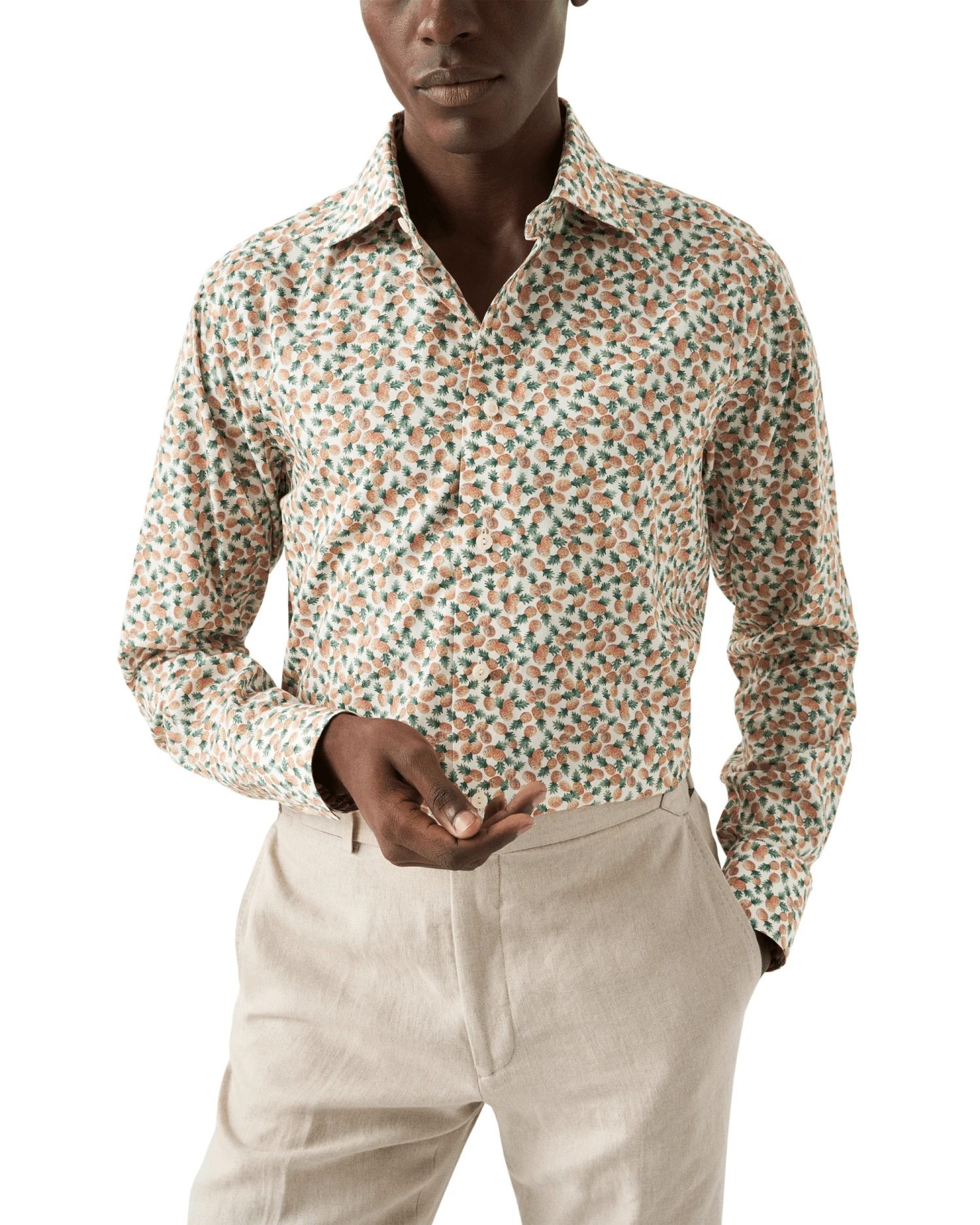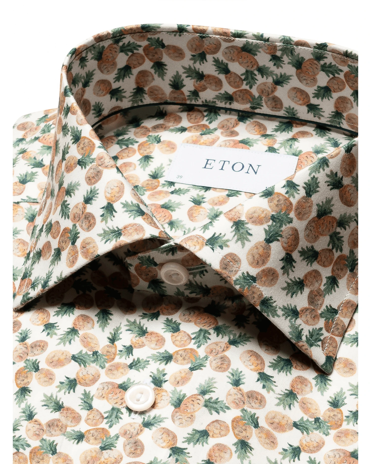 - Eton Mens Pineapple Cotton Print Shirt Orange