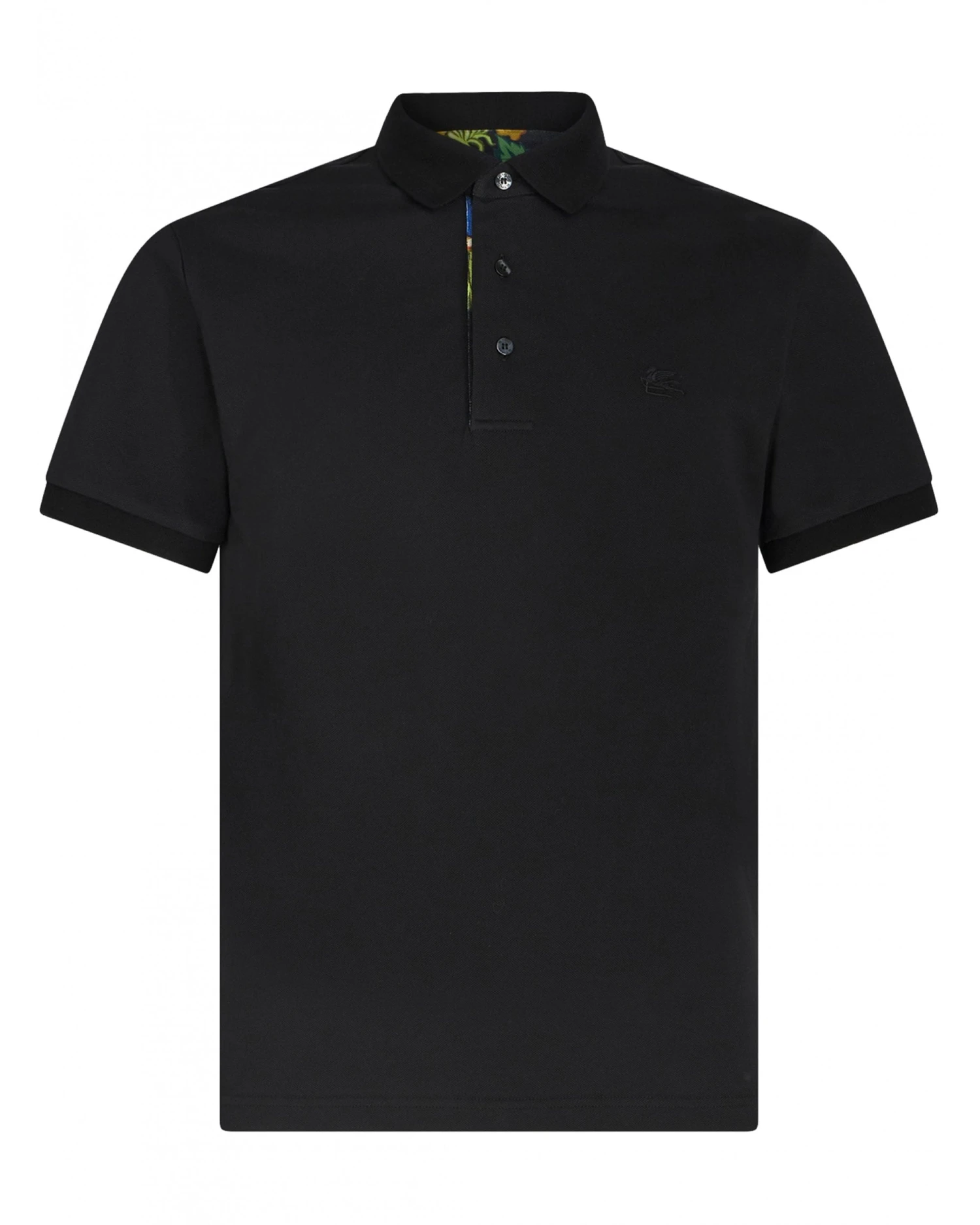 - Etro Mens Contrast Print Collar Polo Shirt Black
