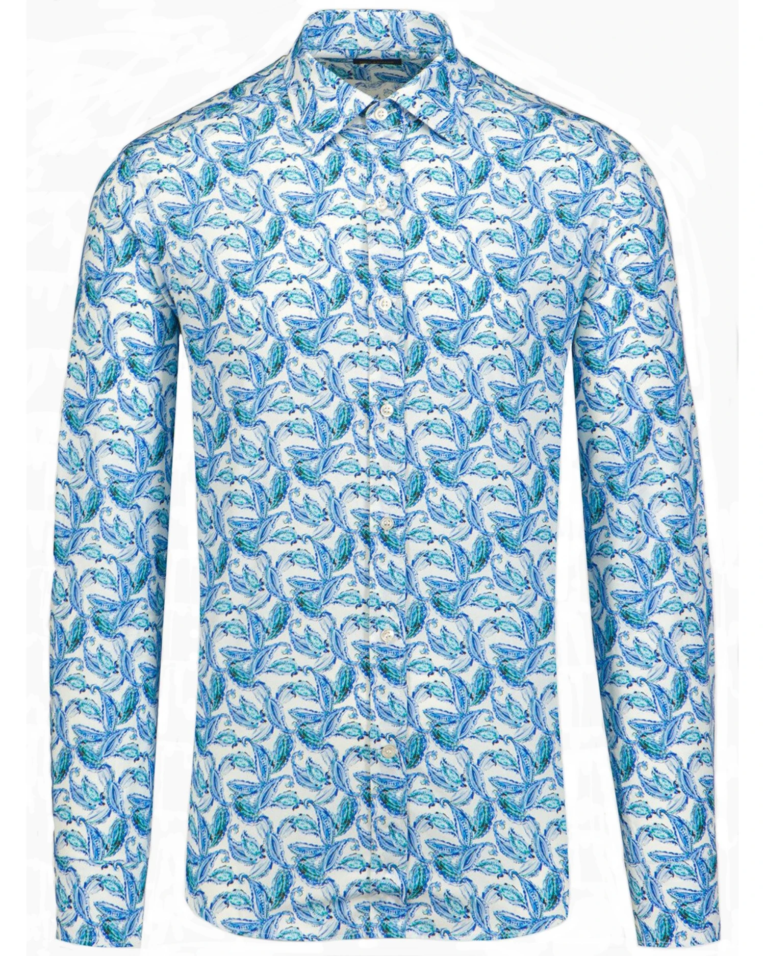 - Paul & Shark Mens Paisley Leaf Shirt Floral White