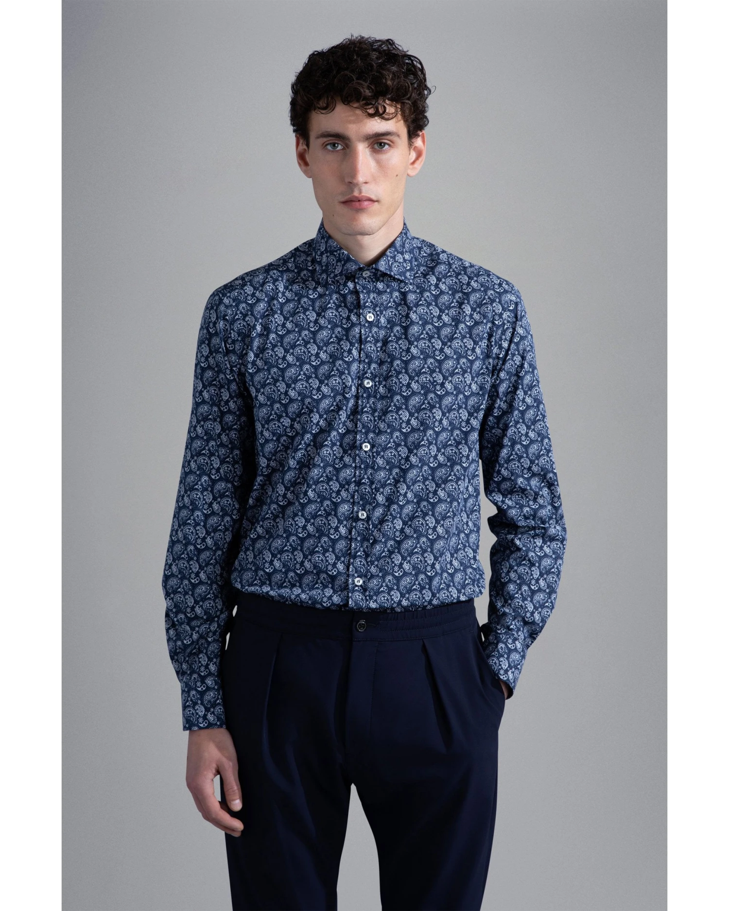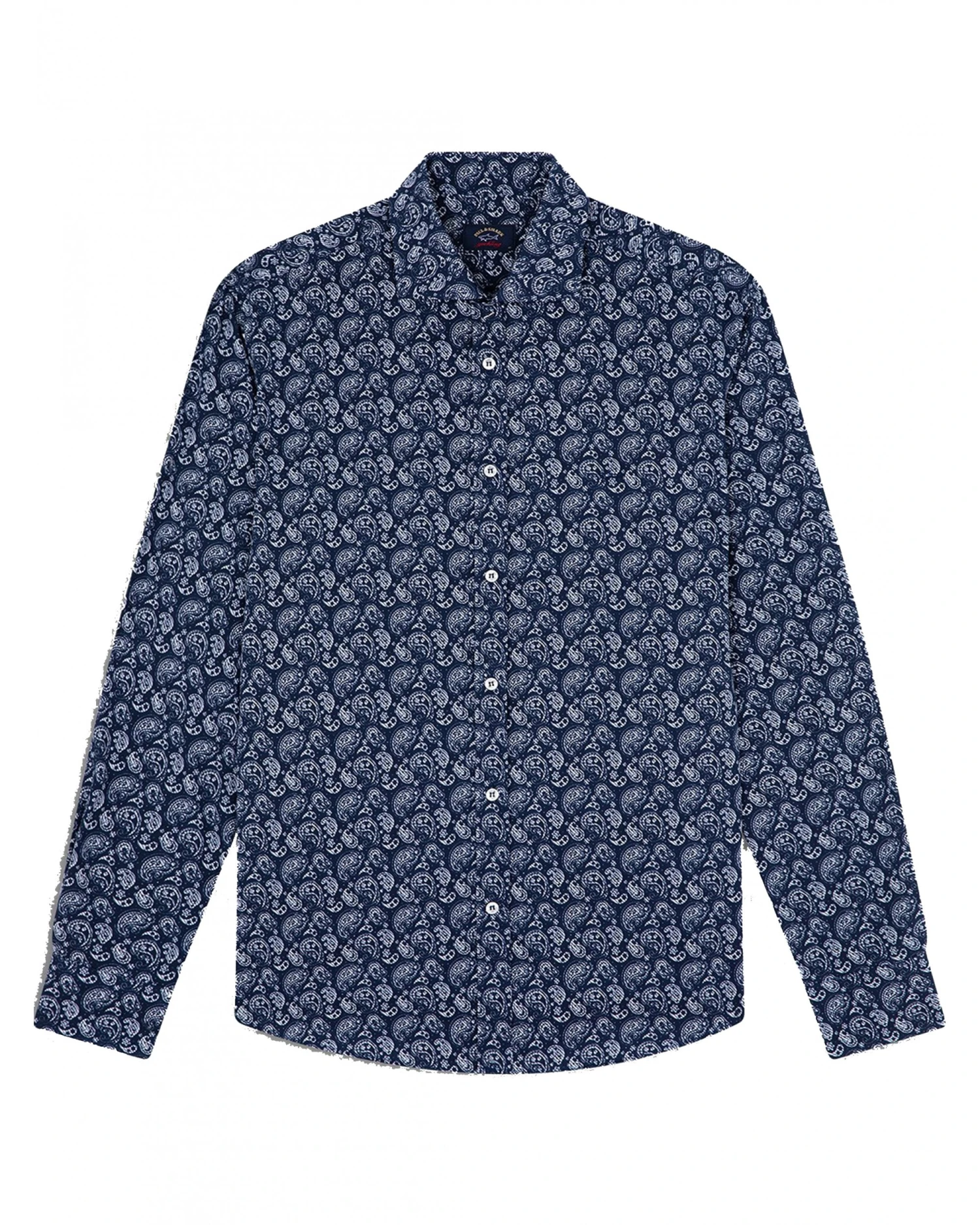 - Paul & Shark Mens Paisley Stretch Shirt Blue Floral
