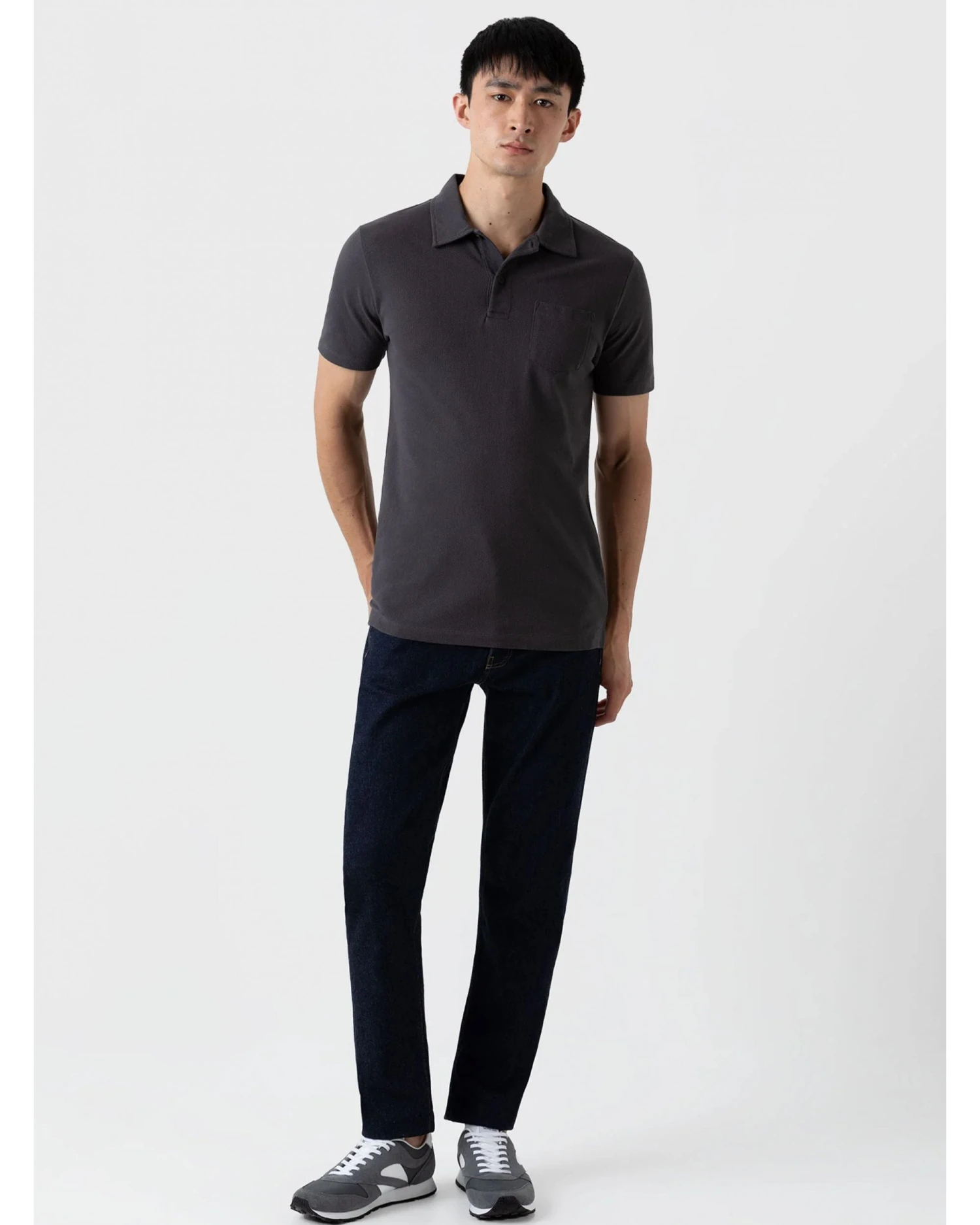 - Sunspel Mens Riviera Polo Shirt Charcoal Grey