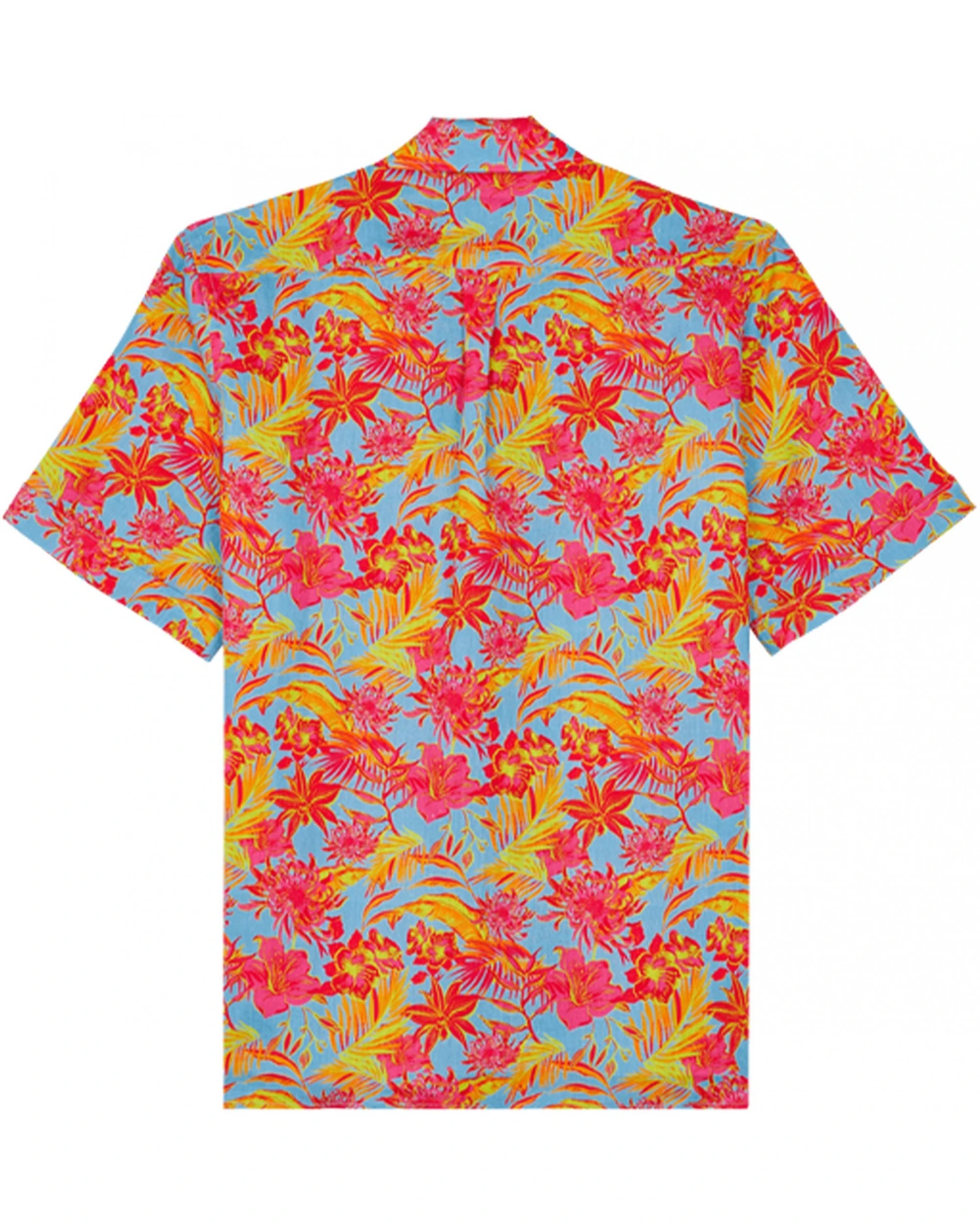 - Vilebrequin Mens Tahiti Flowers Bowling Shirt Multi Blue Red